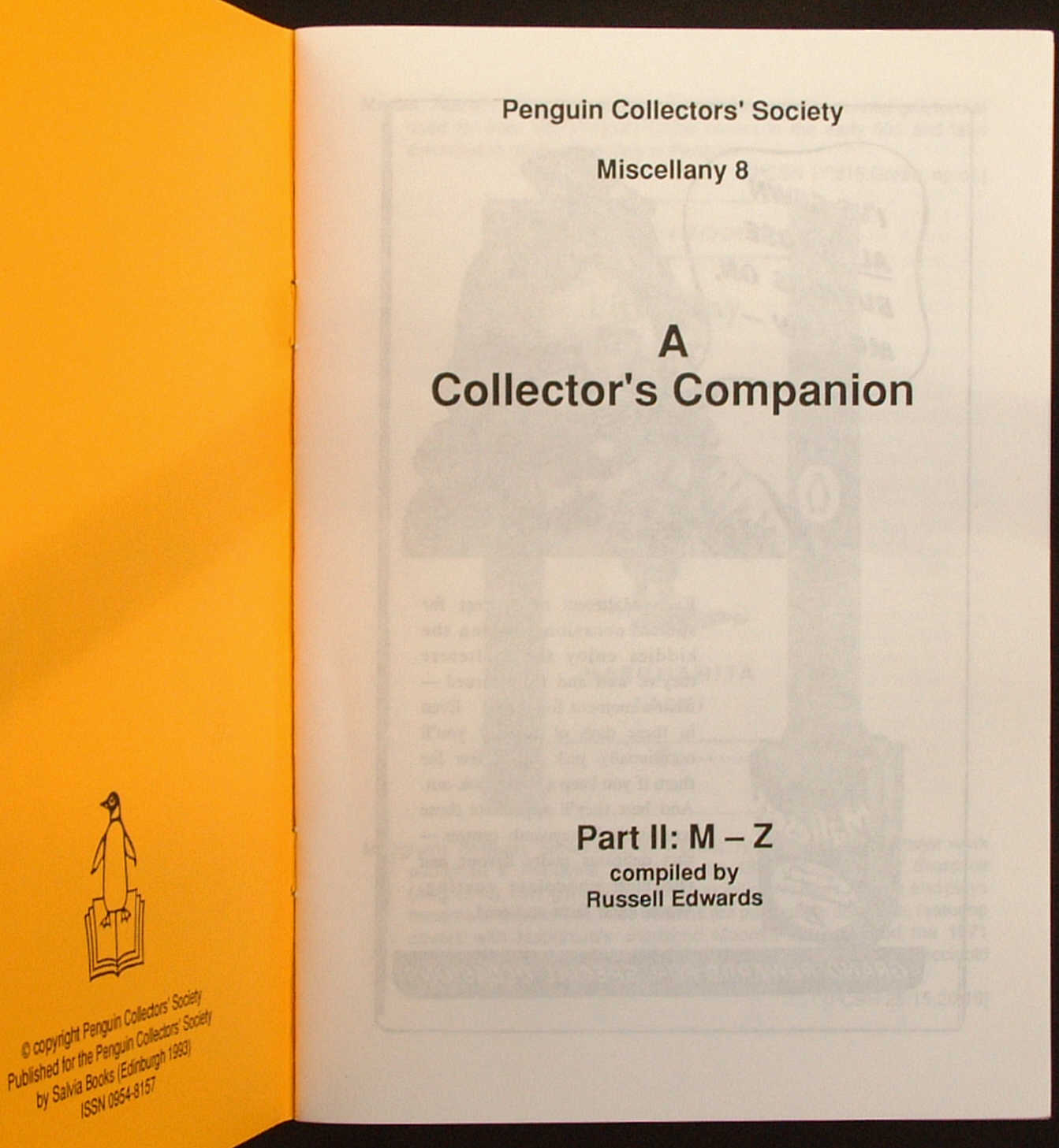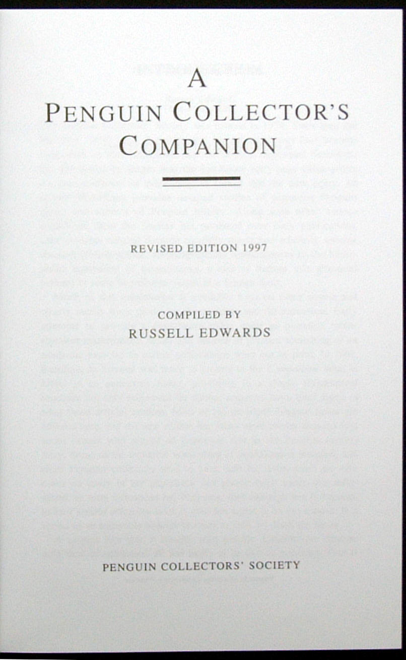 Additionally, we also include OTHER publications by the Penguin Collectors' Society. Miscellany ceased after No. 13 in 1998. PCS had in addition previously published other interesting books, and they continued to do so after 1998. The list below is given in chronological order.